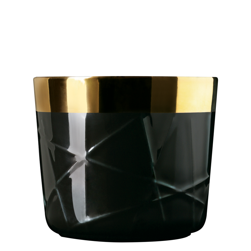 Champagnerbecher Noir, Woven, Stabrelief. Außen Porzellan, der Becherrand und die Innenseite sind vergoldet.