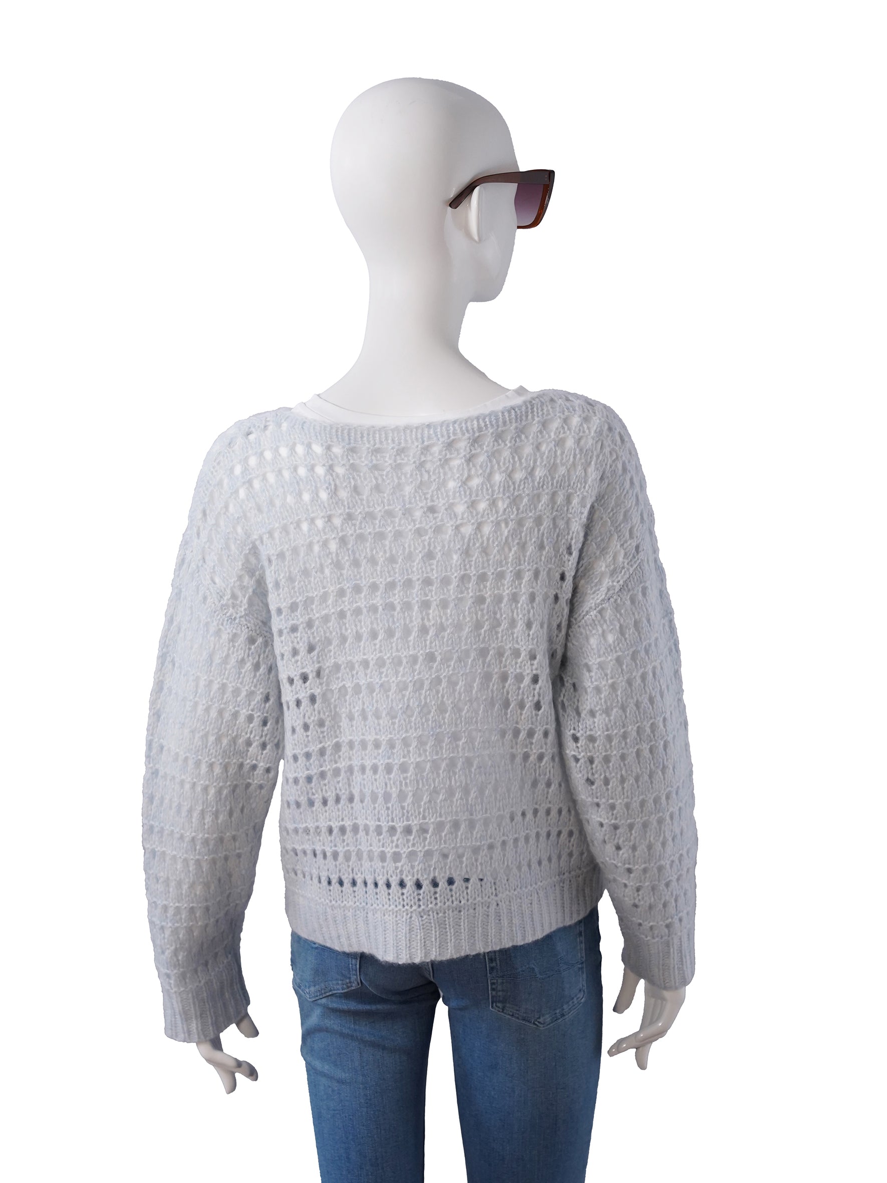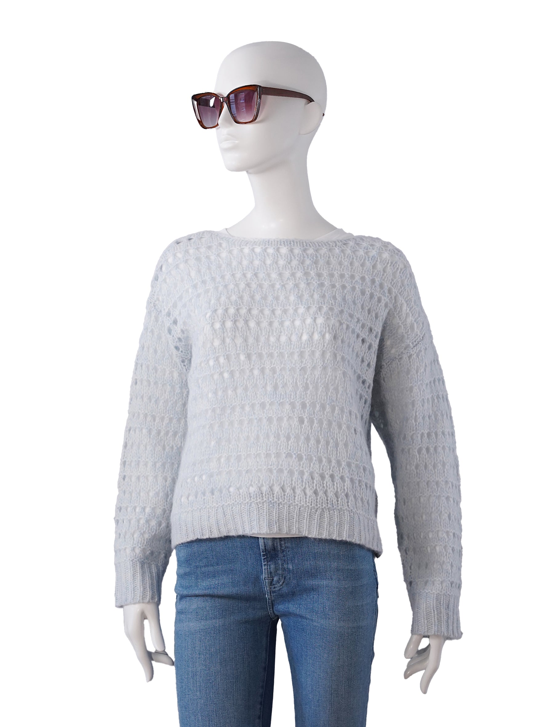 Hellblauer, luftig gestrickter Pullover aus Cashmere und Seide