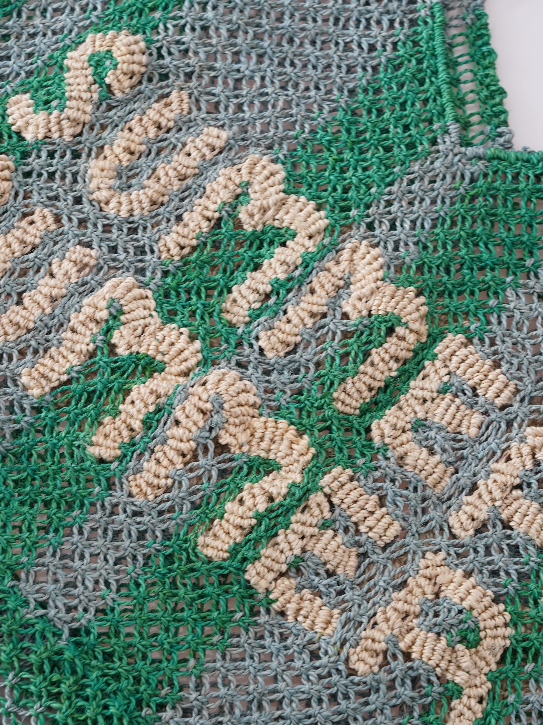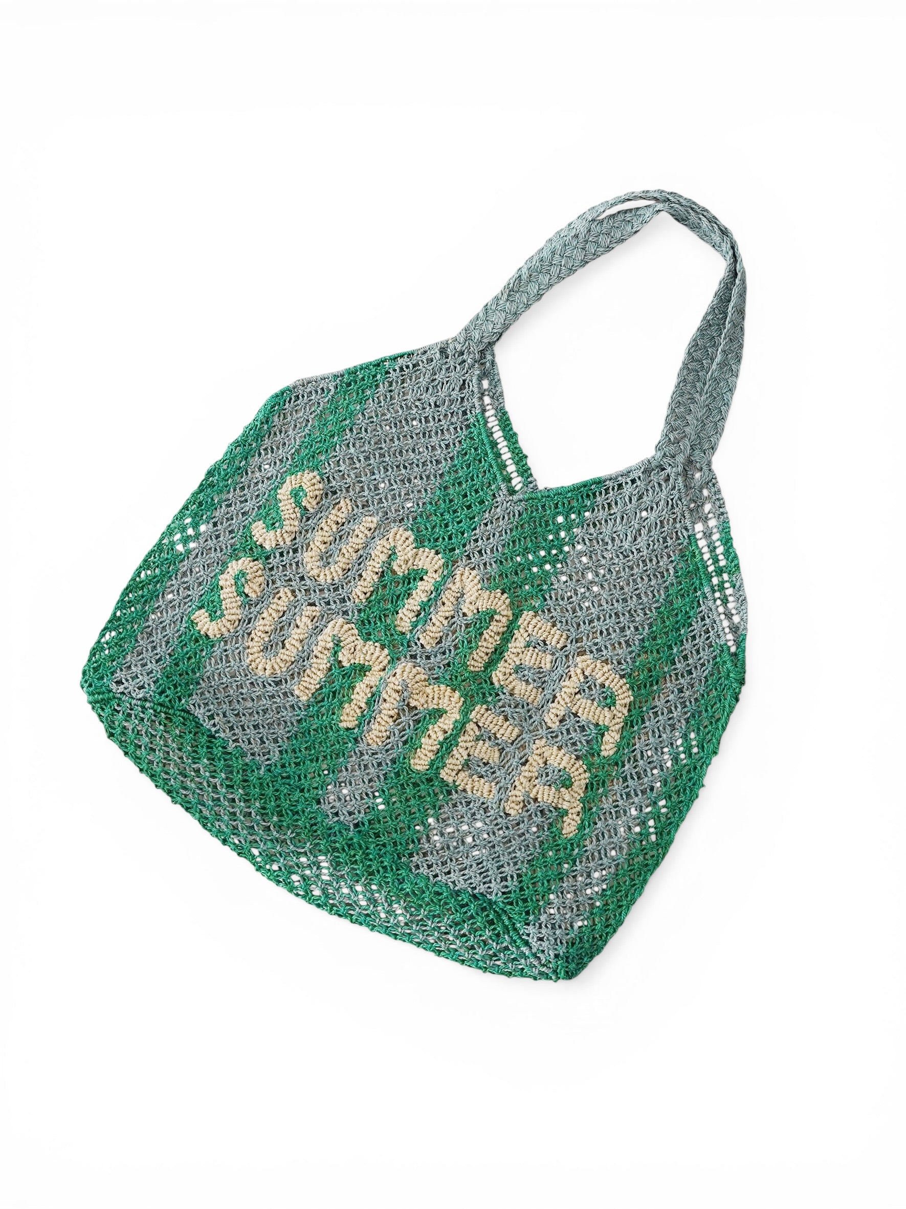 Grün/Blaue Bast-Tasche mit sandfarbenem Schriftzug "summer"