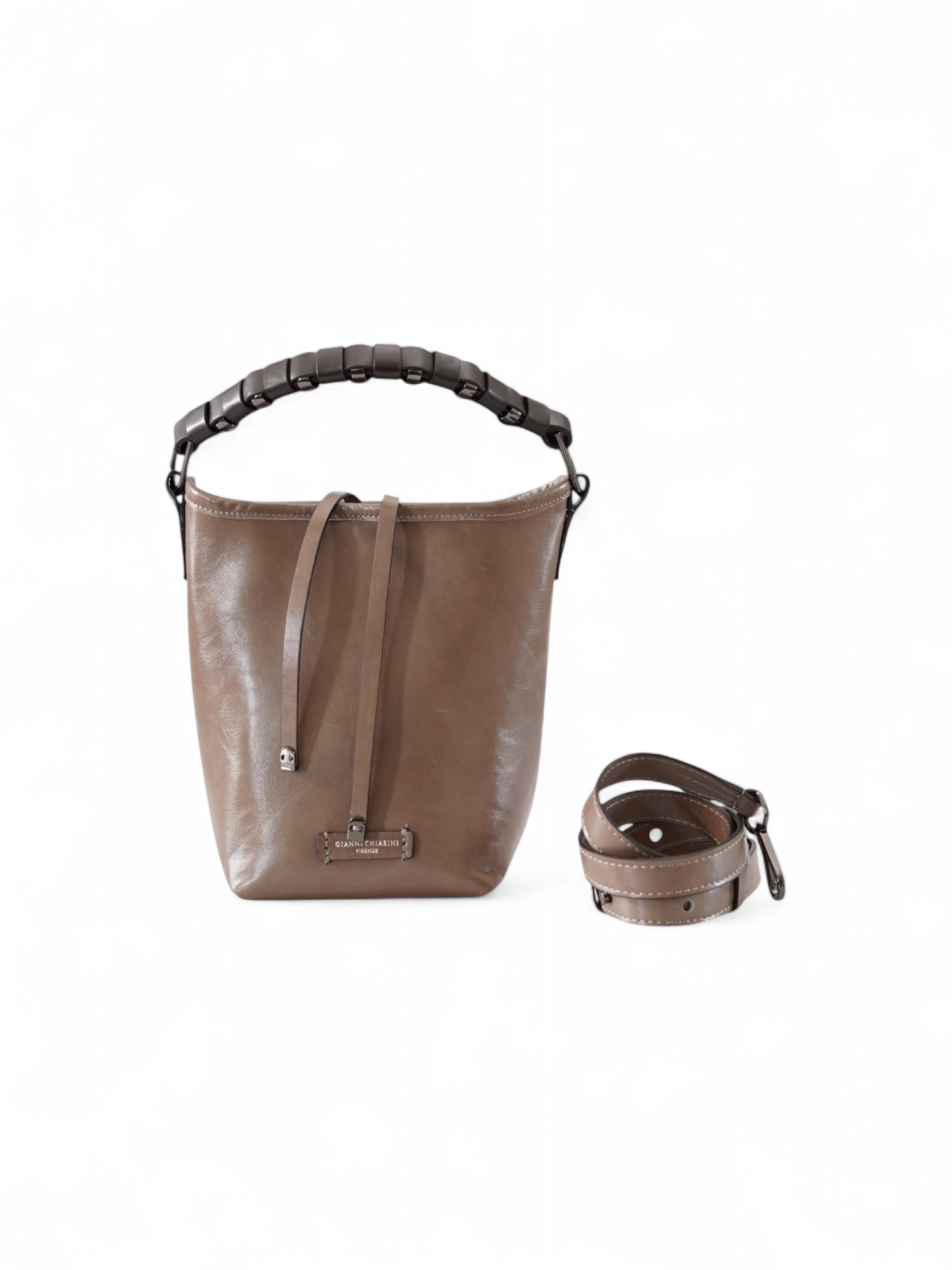 Dieser taupefarbene Beutel von Gianni Chiarini bringt Stil ins Spiel – mit seinen charmant geflochtenen Riemen und dem praktischen, optionalen Crossbody Strap bist Du flexibel unterwegs. Ob leger oder schick, dieser Begleiter macht jedes Outfit zu einem Hingucker!
