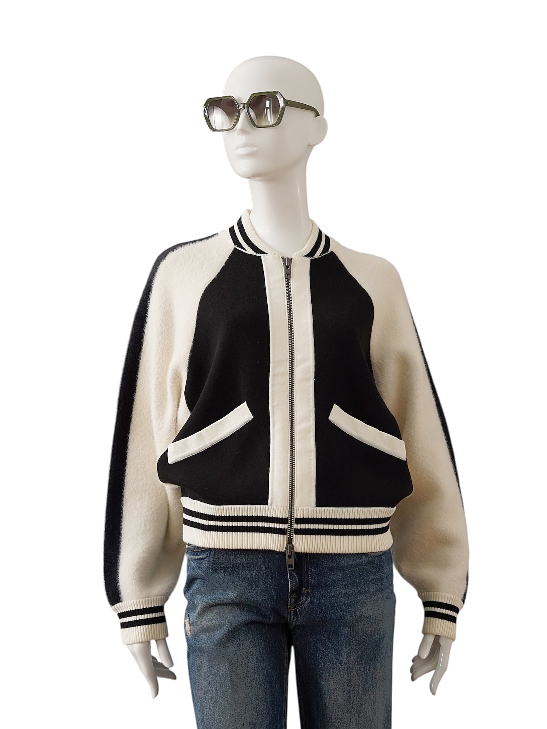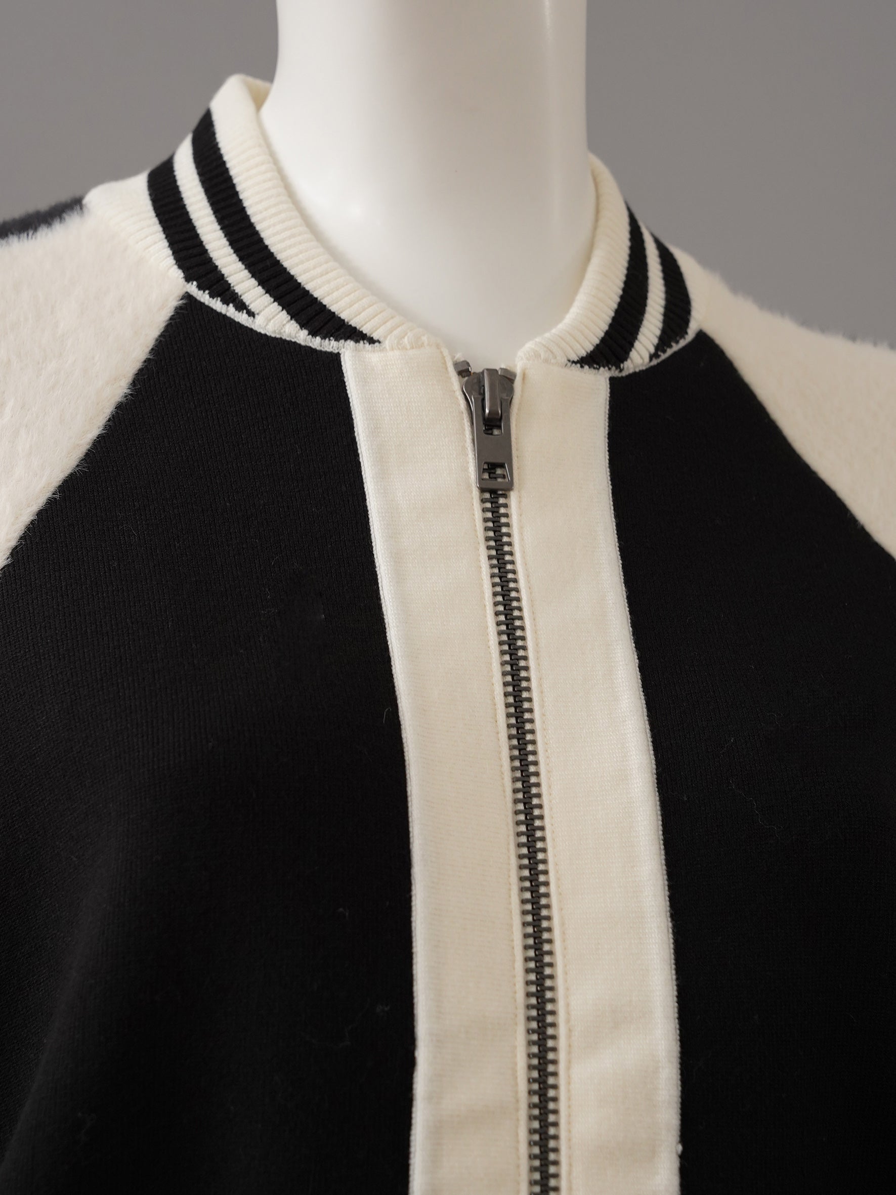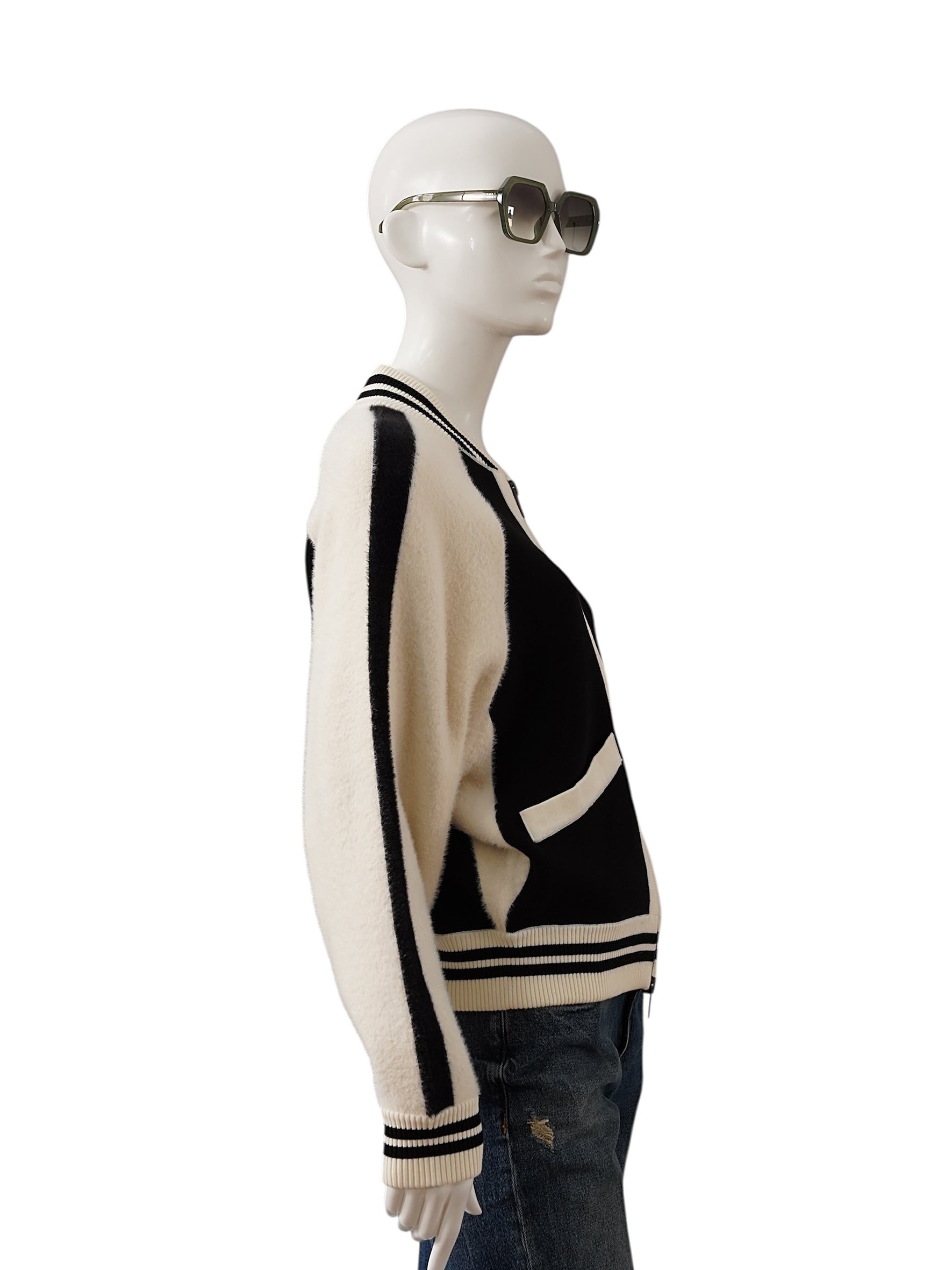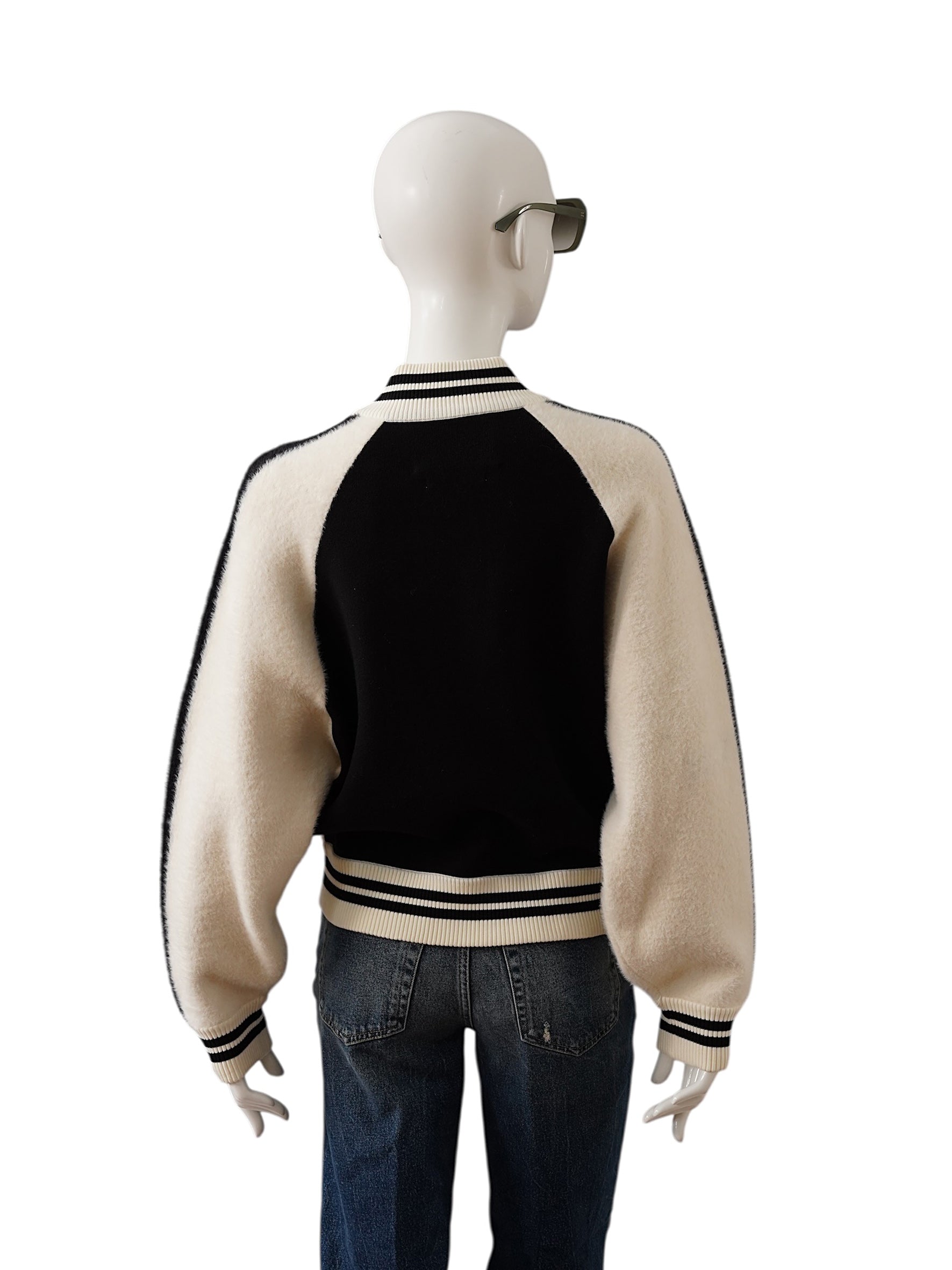 Dieser schwarz/cremefarbene College-Bomber von Essentiel Antwerp aus flauschigem Fake-Fur bringt Kuschelfaktor und Style perfekt zusammen. Die weiche Oberfläche sorgt für ein angenehmes Tragegefühl, während die coolen Farben Deinem Look eine verspielte Note verleihen. Ideal für alle, die modisch auffallen und sich dabei rundum wohlfühlen möchten!