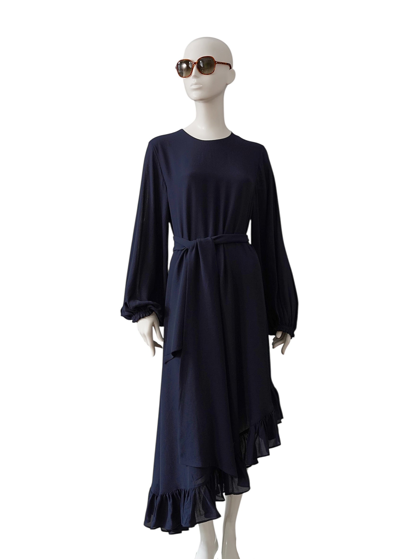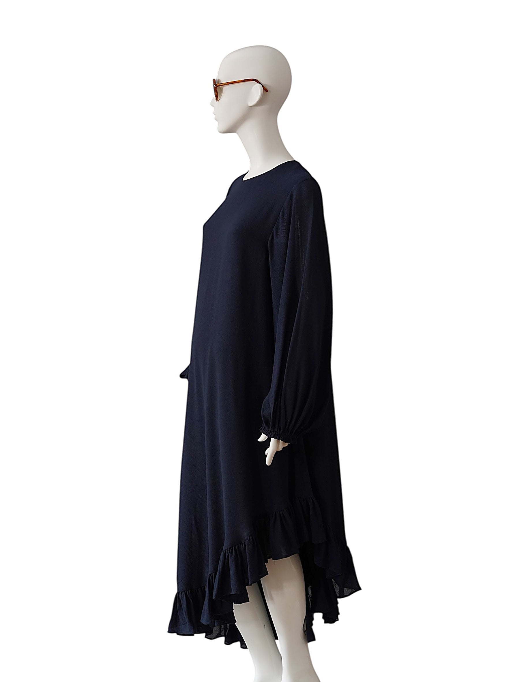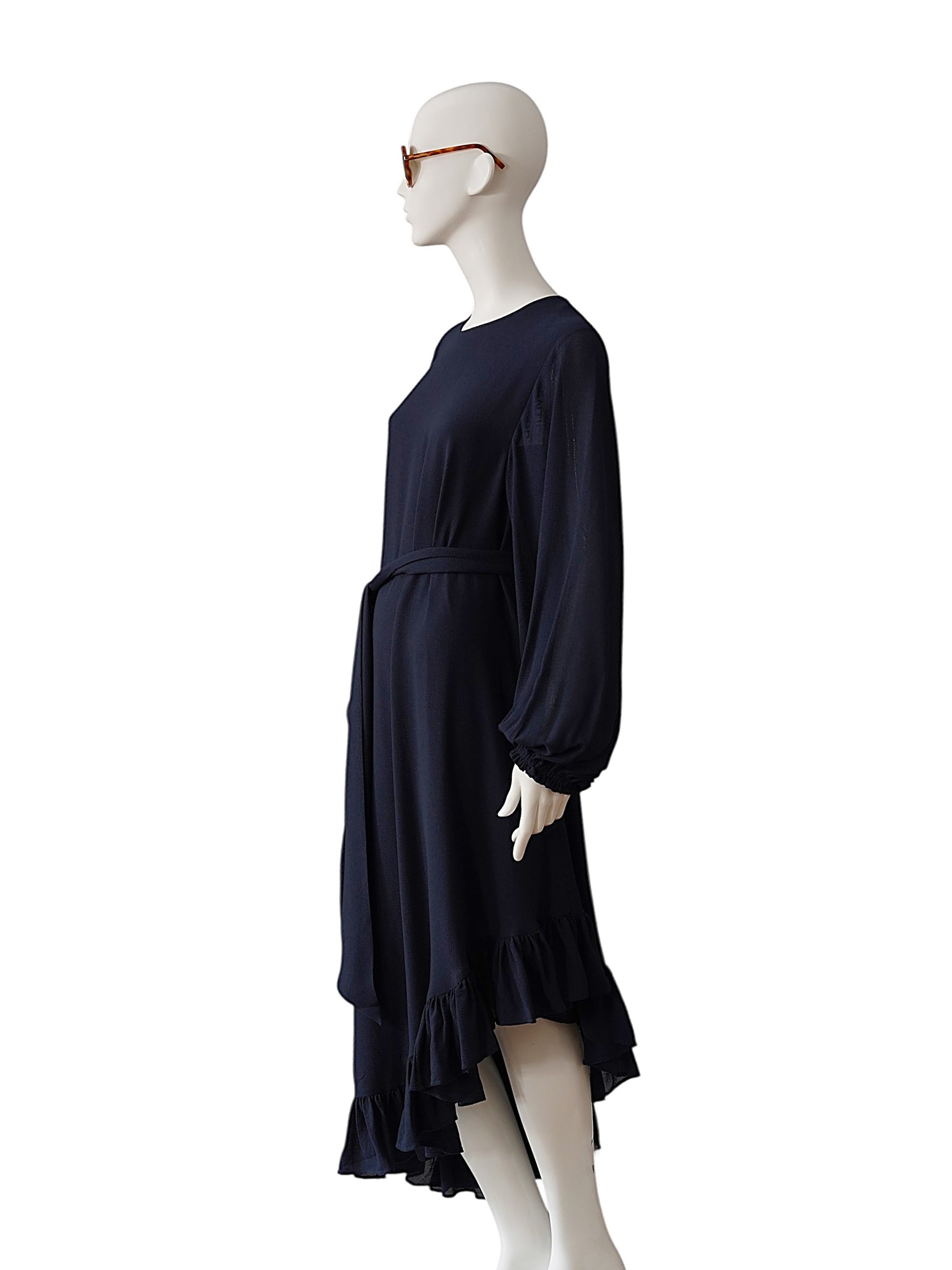 Dieses dunkelblaue Kleid von Essentiel Antwerp begeistert mit seinem verspielten Volant und dem asymmetrischen Schnitt. Ein echter Blickfang, der bei jedem Anlass für bewundernde Blicke sorgt und deine Persönlichkeit perfekt unterstreicht. Leicht, elegant und einfach unwiderstehlich!