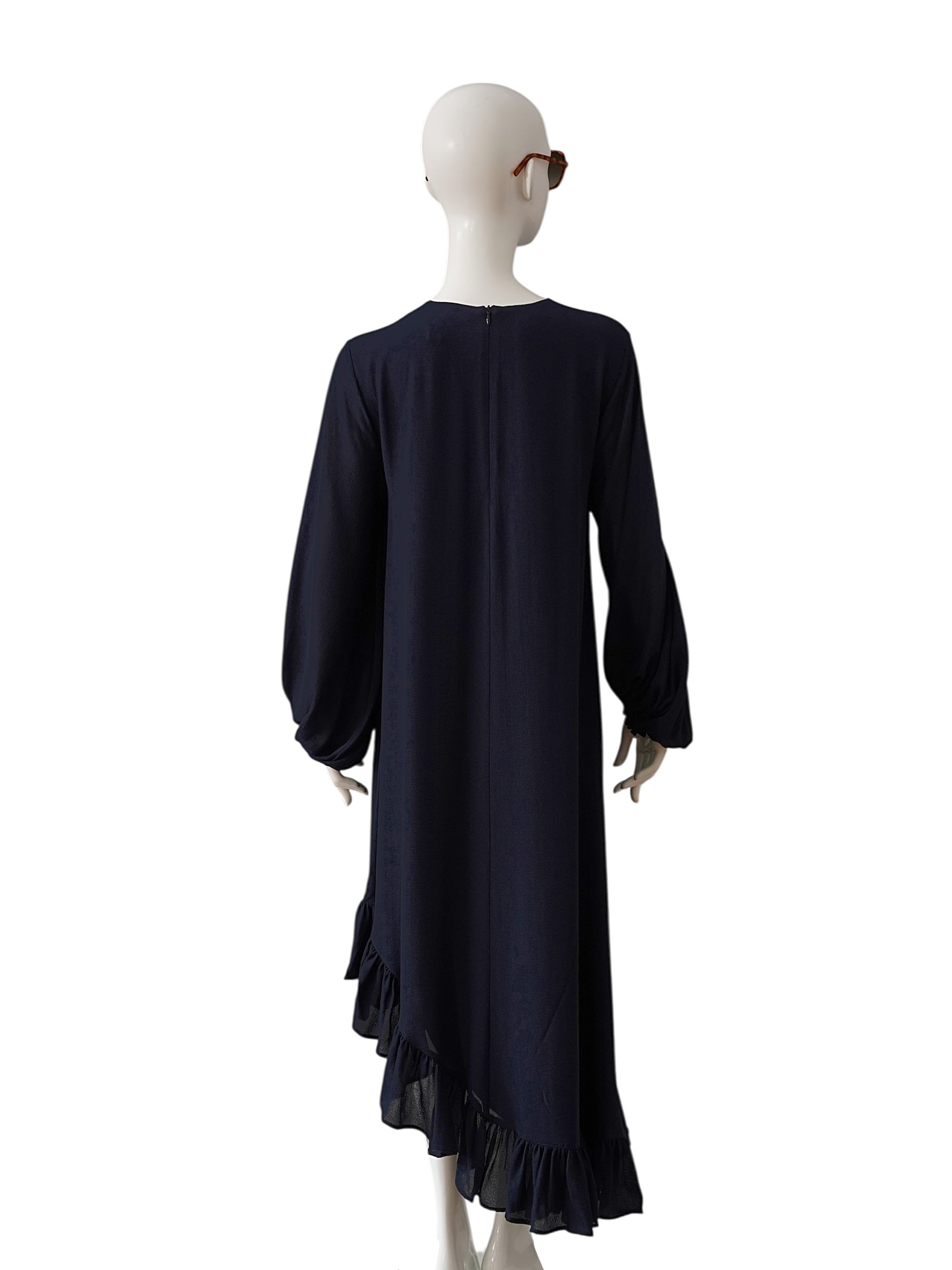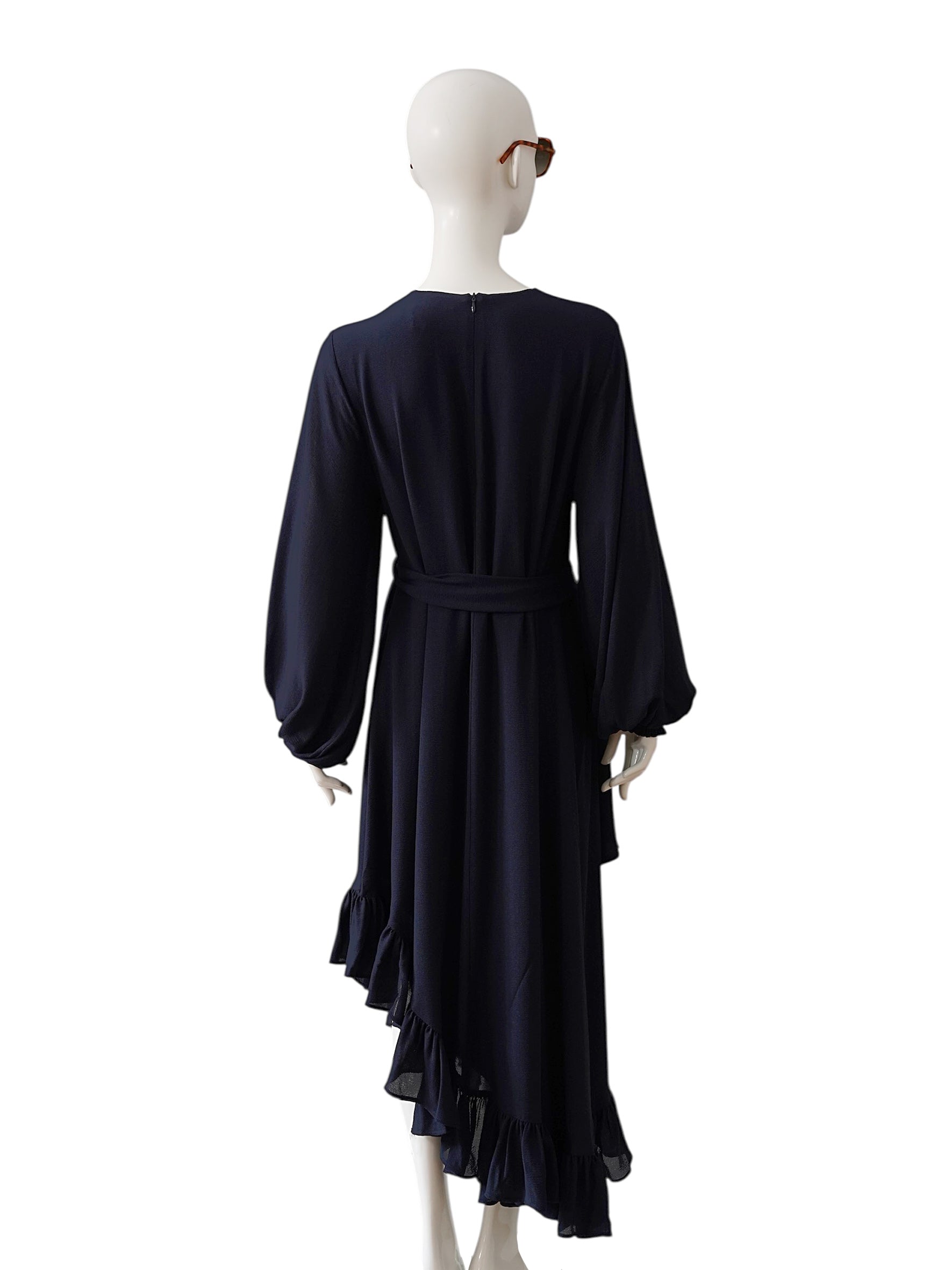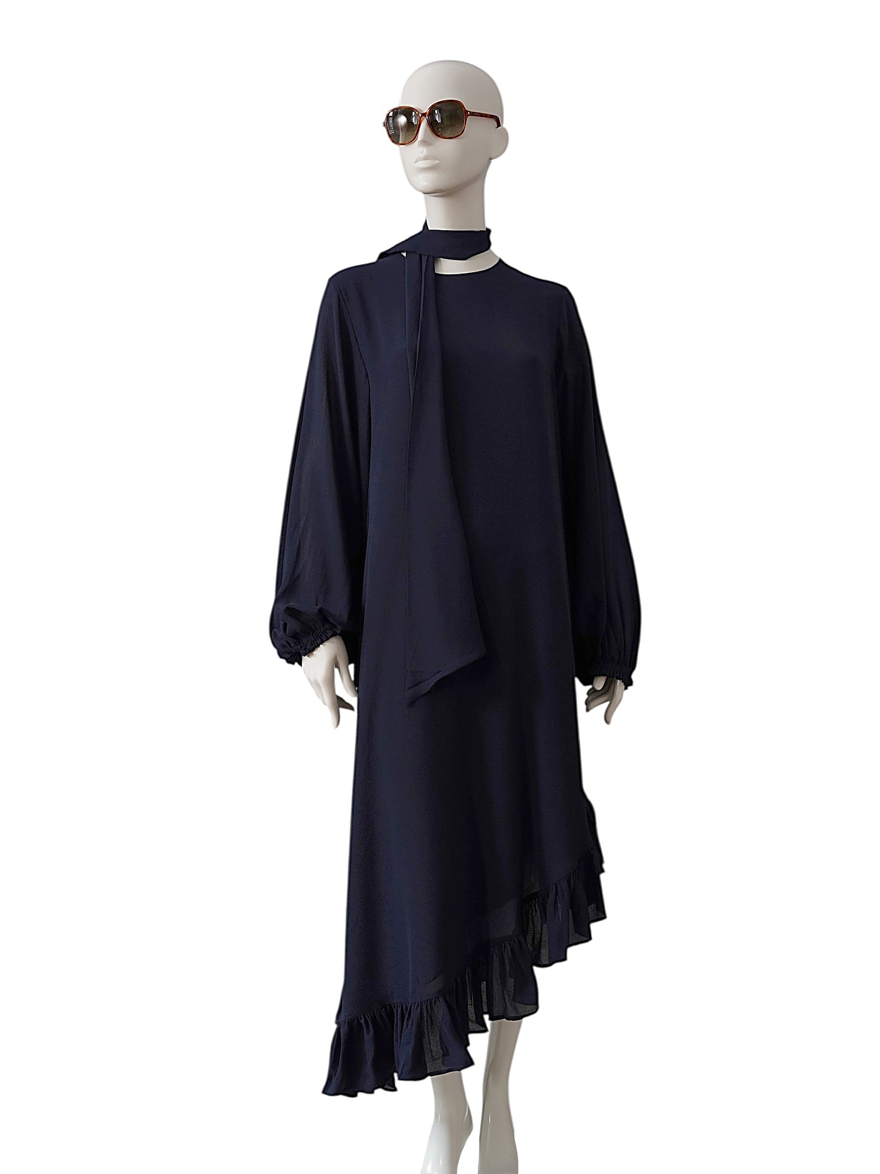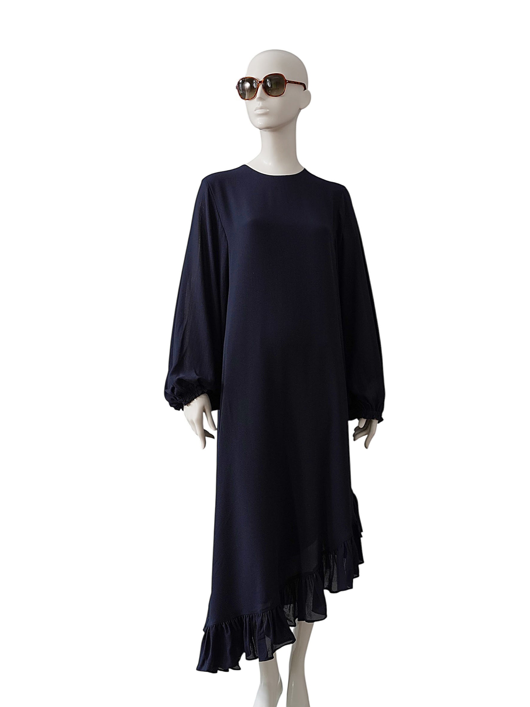 Dieses dunkelblaue Kleid von Essentiel Antwerp begeistert mit seinem verspielten Volant und dem asymmetrischen Schnitt. Ein echter Blickfang, der bei jedem Anlass für bewundernde Blicke sorgt und deine Persönlichkeit perfekt unterstreicht. Leicht, elegant und einfach unwiderstehlich!
