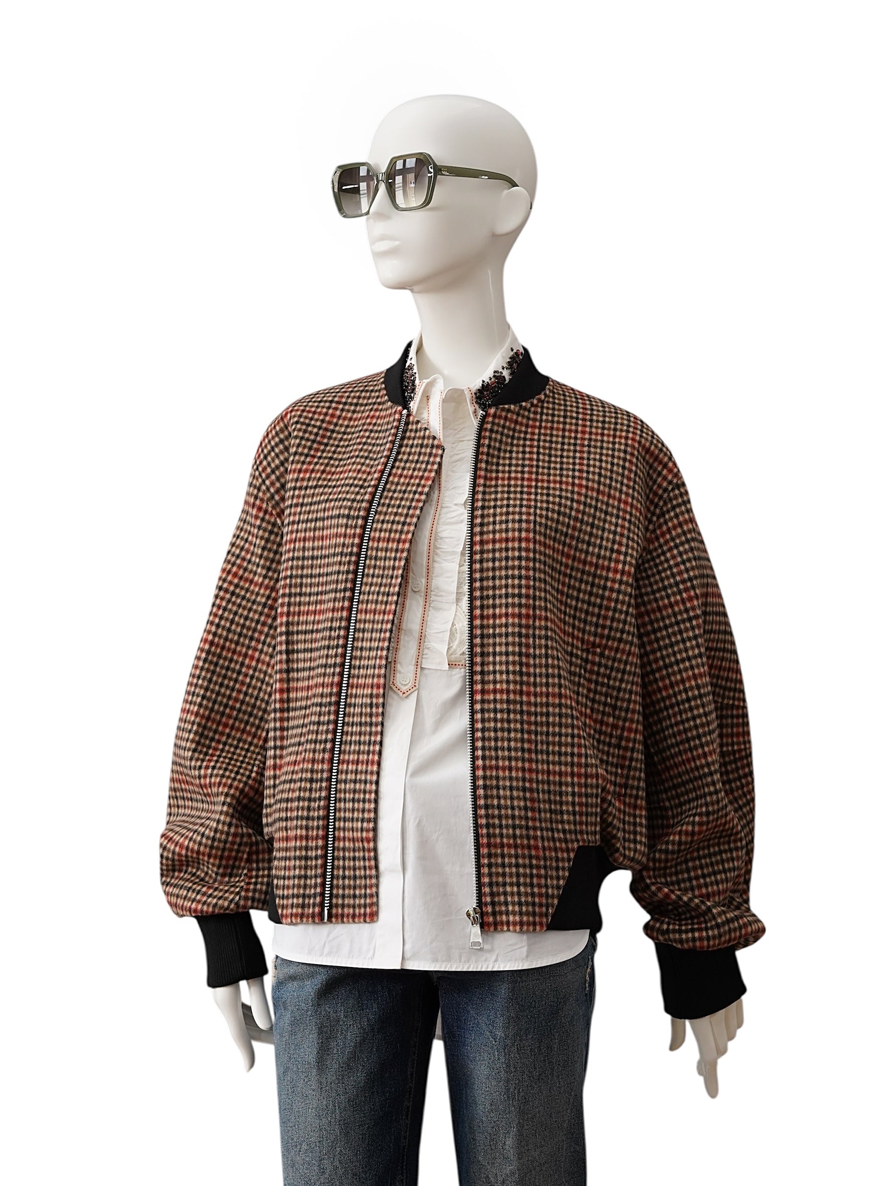 Rot/Braun karierter Oversize Bomber