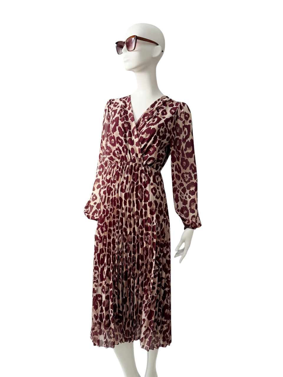 Bordeauxfarbenes Kleid mit Leo-Print