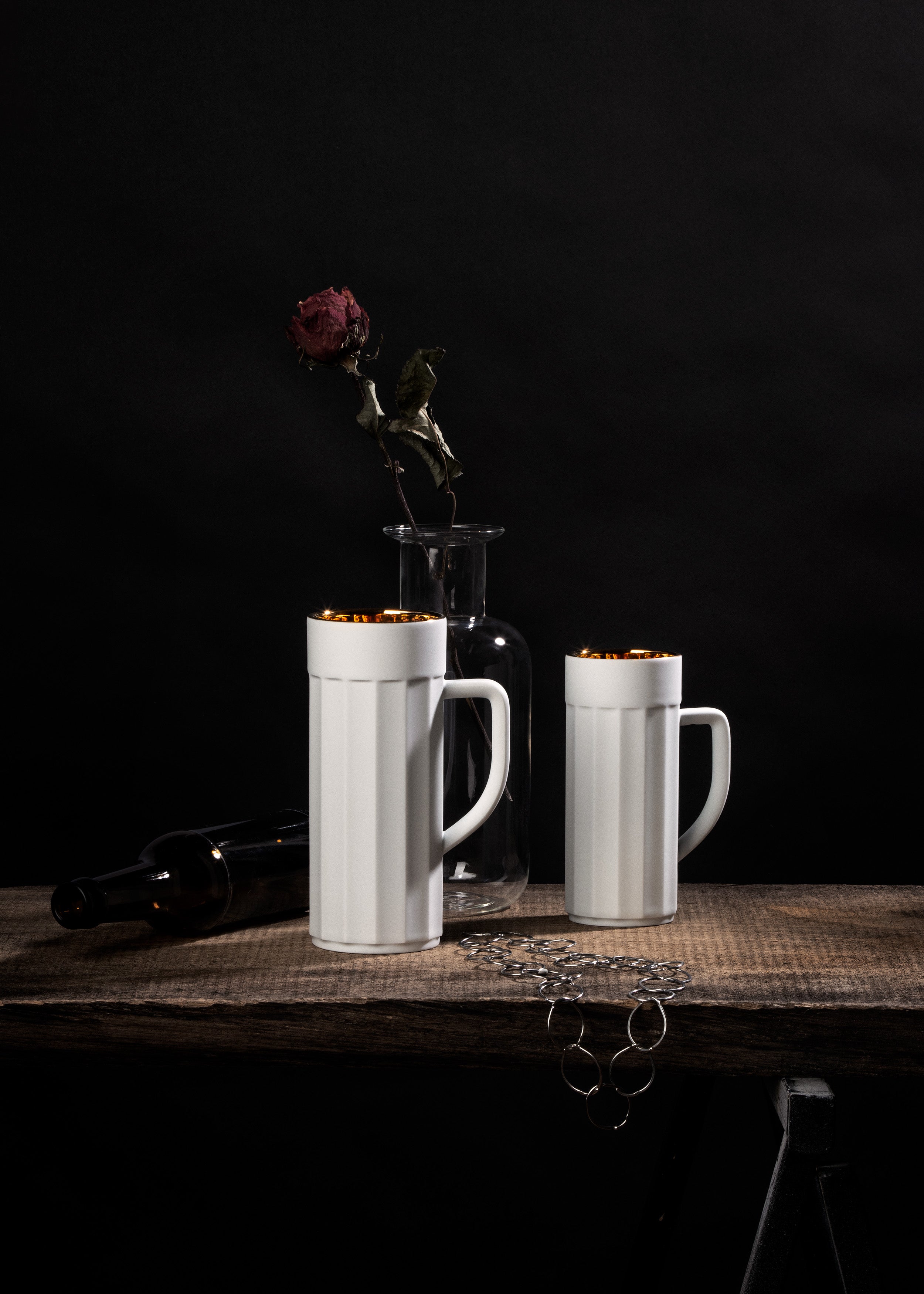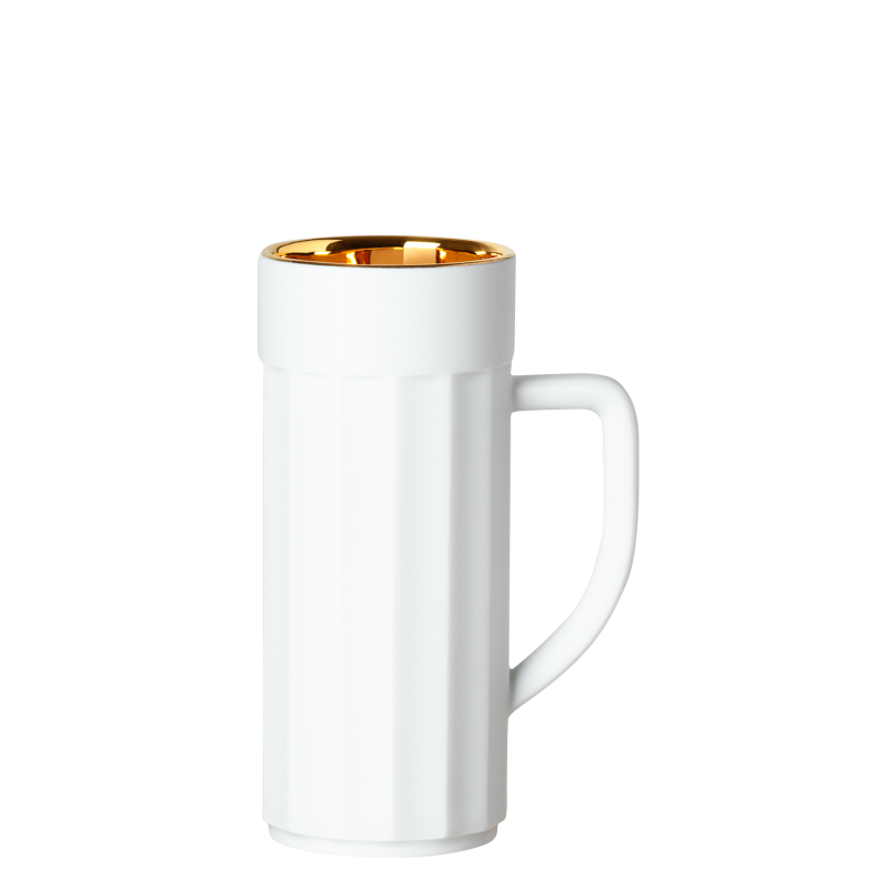 Das Braurecht wurde einst von Königen und Fürsten verliehen, um die Qualität und zugleich eine lohnende Einnahmequelle zu sichern. Noch heute finden sich deren herrschaftliche Insignien in den Wappen vieler Brauereien. Bier zählt zu den ältesten und international verbreitetsten Getränken der Welt, überall wird es gebraut und vor allem gern getrunken. Mit Of Kings & Queens belebt SIEGER by FÜRSTENBERG diese Tradition neu. Designer Michael Sieger zitiert die klassische Form des Bierkrugs in einer elegant-schlanken Neuinterpretation aus Porzellan und Gold.