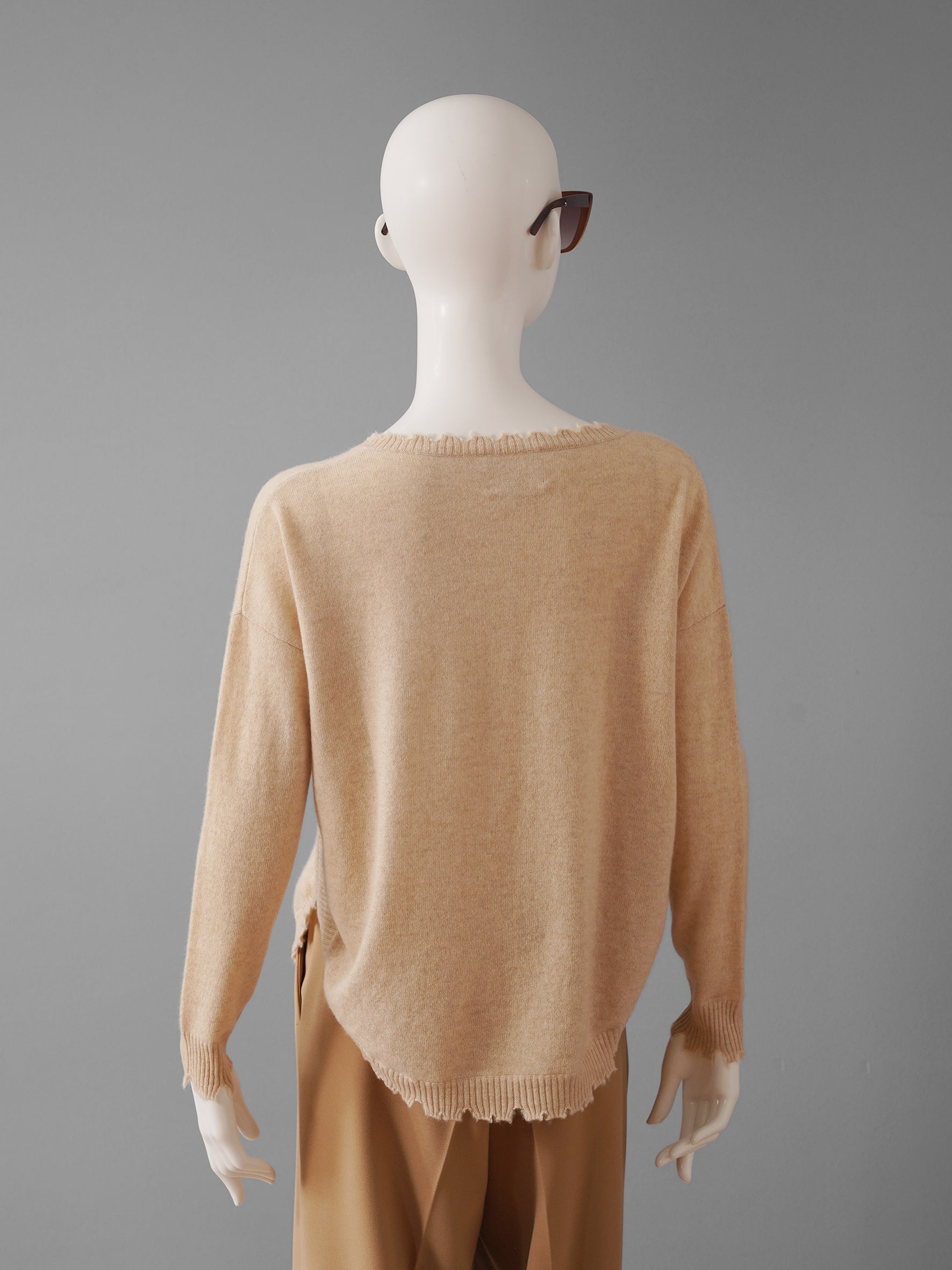 Camelfarnener Cashmere-Pullover mit destroytem Saum