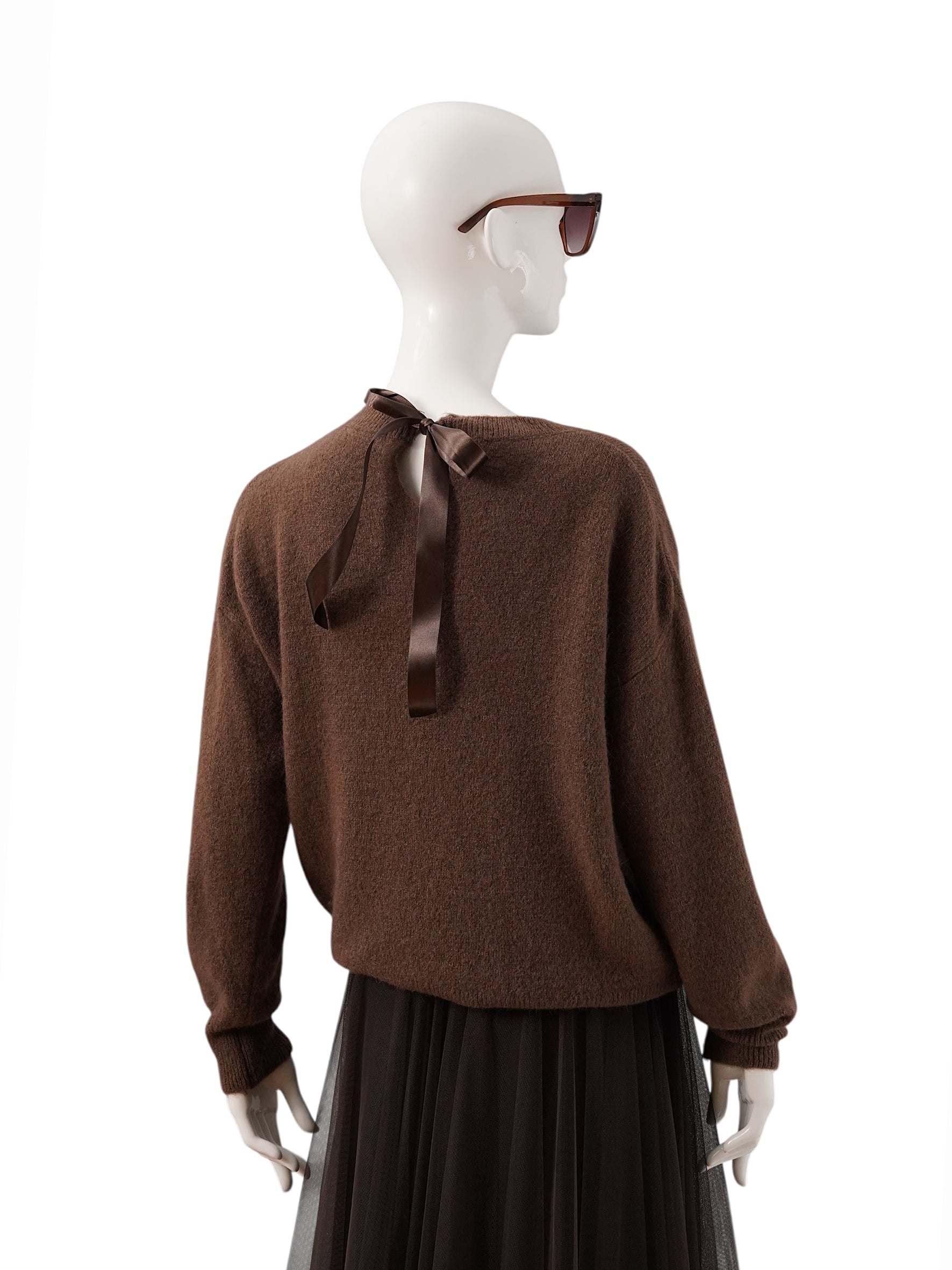Brauner Pullover mit Schleife
