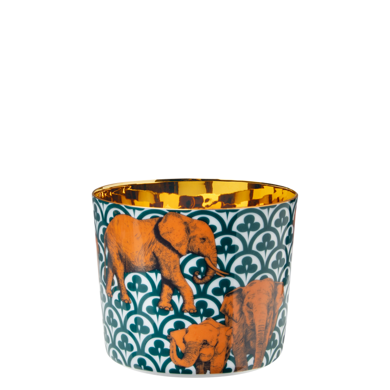 Champagnerbecher "The Elephants", außen Porzellan, die Innenseite ist vergoldet.
