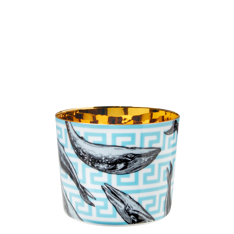 Champagnerbecher "The Whales", außen Porzellan, die Innenseite ist vergoldet.