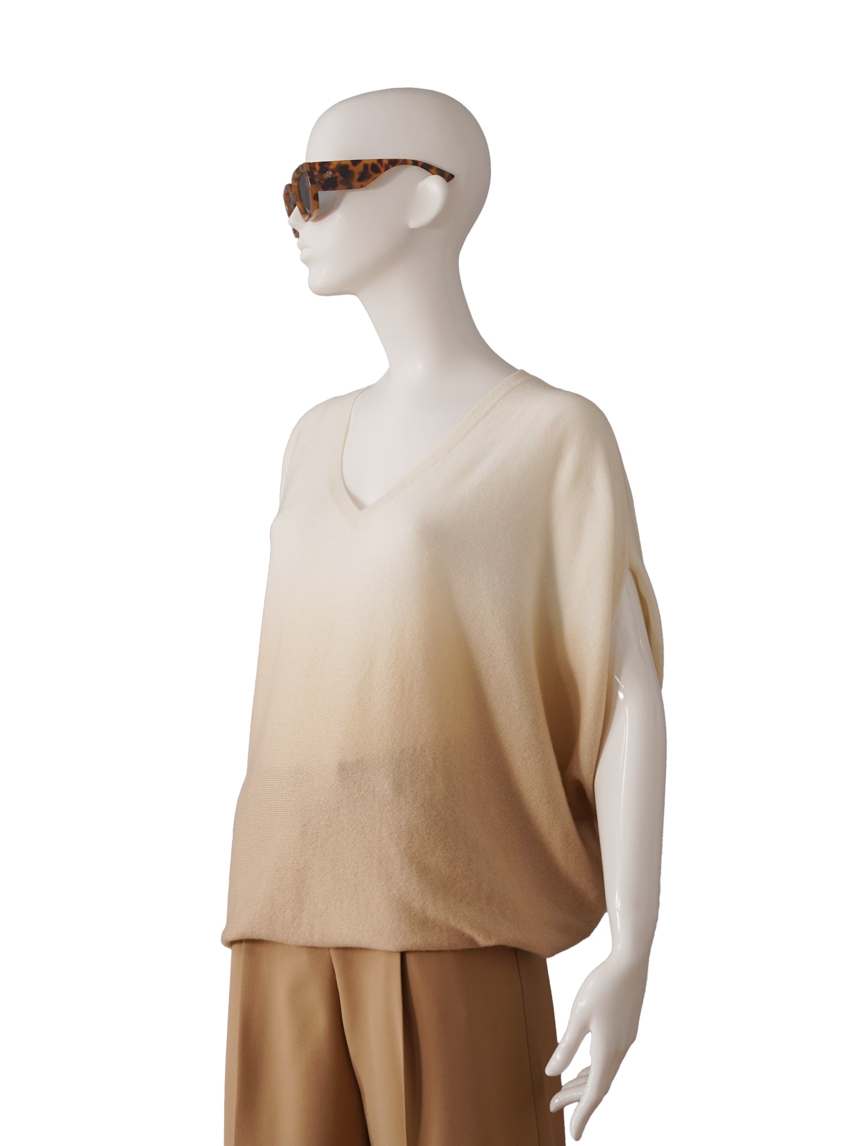 Creme/Sandfarbener Cashmere kurzarm V-Neck