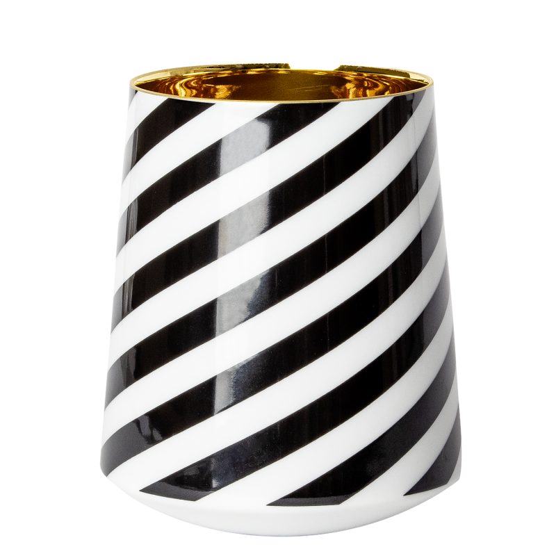 Das puristische Weiß der Wein- und Digestifbecher steht im eleganten Kontrast zu dem opulenten, warm leuchtenden 24-Karat-Gold im Inneren. Es unterstreicht die zarte Wertigkeit des Porzellans und hat einen zusätzlichen Effekt: Weiß- und Roséweine behalten ihre erfrischende Kühle, Rotweine lange ihre vorgegebene Trinktemperatur.