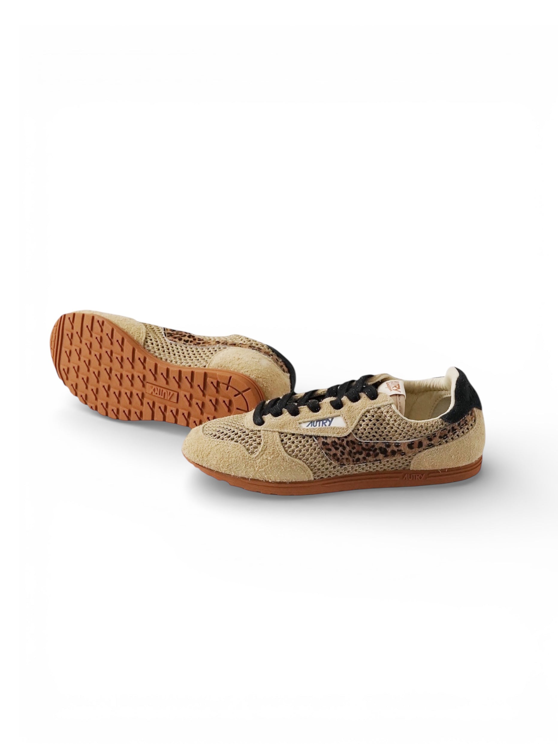 Sandfarbener Velour Autry-Sneaker mit Leo Details "Windspin"